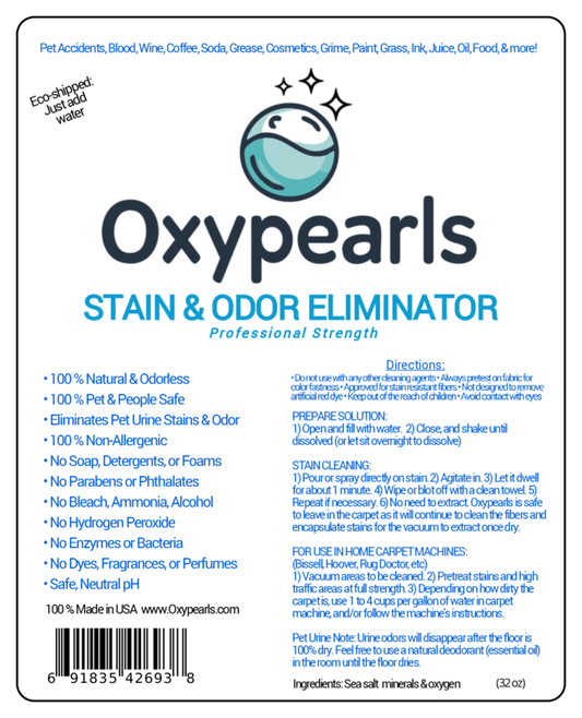 32 oz spray bottle of Oxypearls Carpet, Upholstery, and Pet Stain & Odor Eliminator